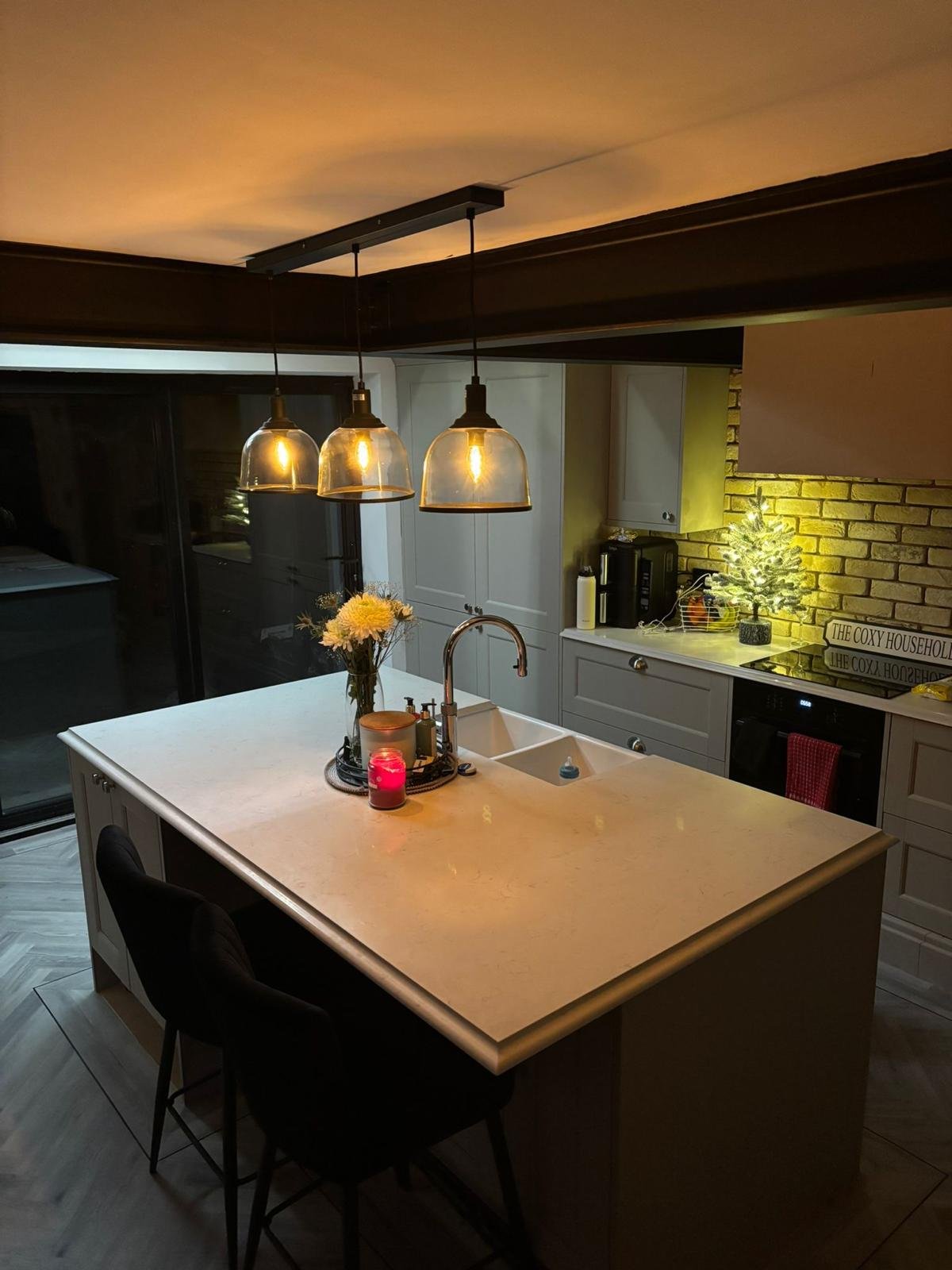 Internally, the finish was completed to an exceptionally high standard. The master bedroom features two downlights positioned either side of the bed, controlled by a two-way gang switch, allowing operation from both the doorway and bedside. A matching two-way lighting system was installed in the en-suite, along with a contemporary LED-lit niche, adding both practicality and a touch of luxury.